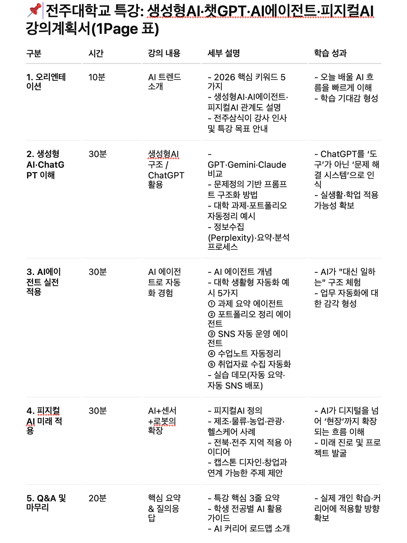 이번 전주대학교 특강에서는 다음과 같은 핵심 주제를 강의했습니다.
