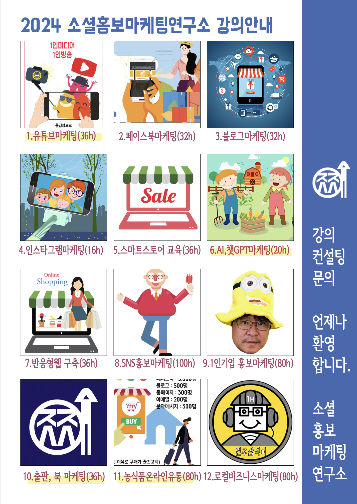 📌 강의 주요 내용: ✔ 네이버 블로그 최적화(SEO) 방법 ✔ 키워드 분석 및 활용법 ✔ 신뢰도 높은 블로그 운영 전략 ✔ 농산물 판매를 위한 콘텐츠 제작법