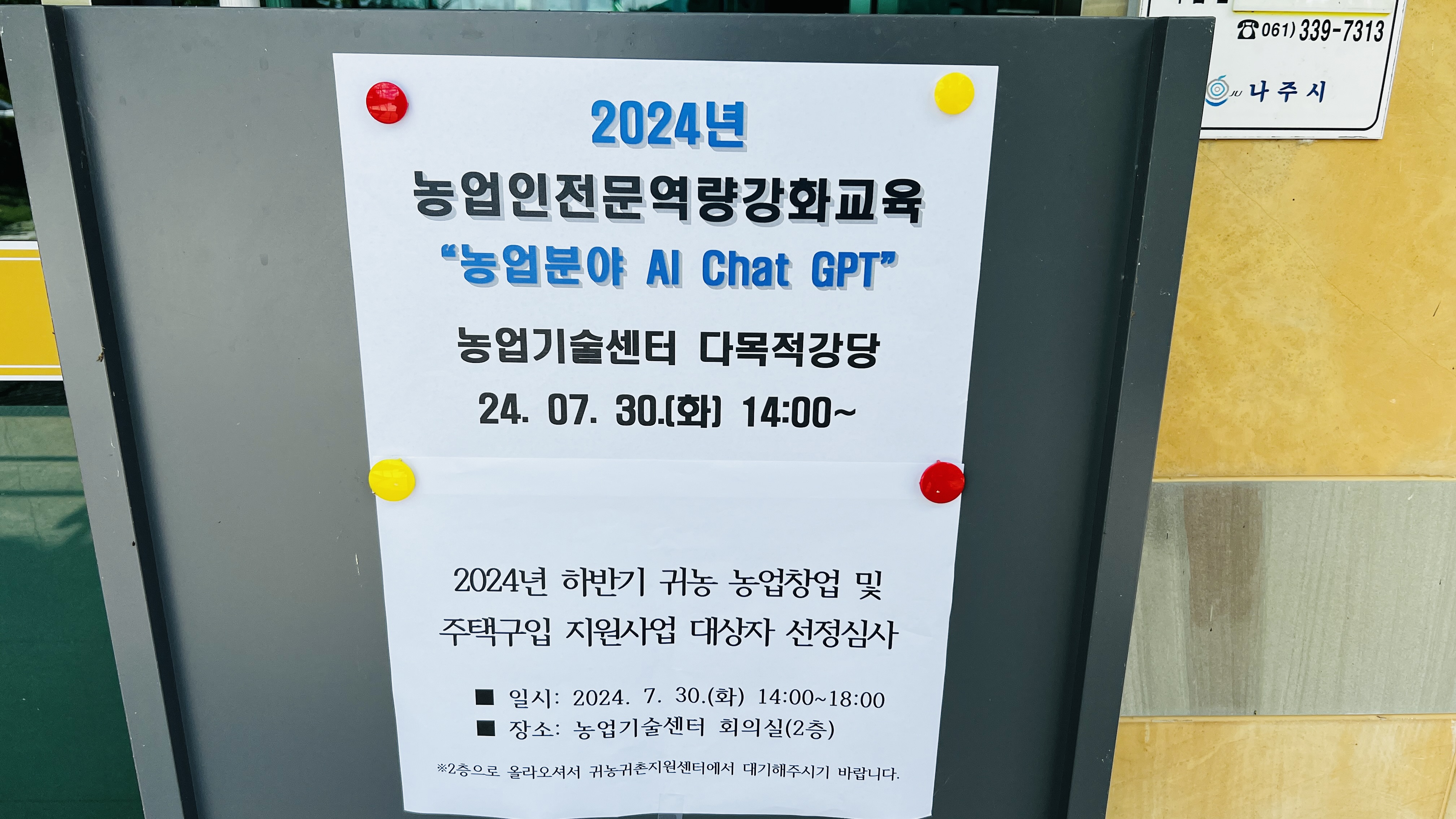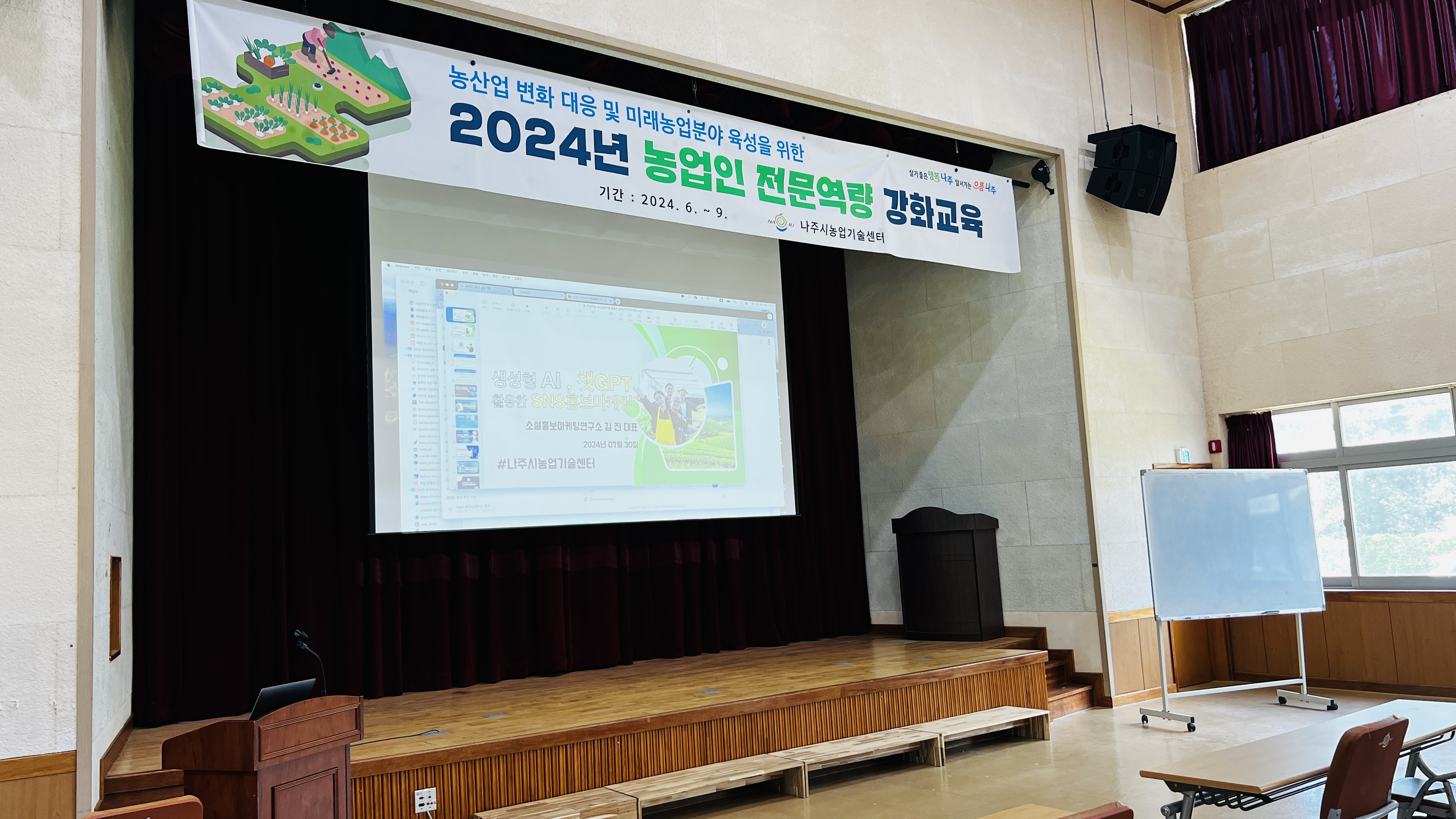 지난 2024년 7월 30일 화요일, 나주시 농업기술센터에서 열린 농업인 전문역량 강화 교육에서 저는 최신 AI 기술을 농업에 접목하는 방법에 대해 강의했습니다. 이번 교육은 특히 청년농업인, 귀농귀촌인, 정보화농업인을 대상으로 하여, 그들의 농업 비즈니스에 혁신적인 변화를 일으킬 수 있는 기회를 제공했습니다.